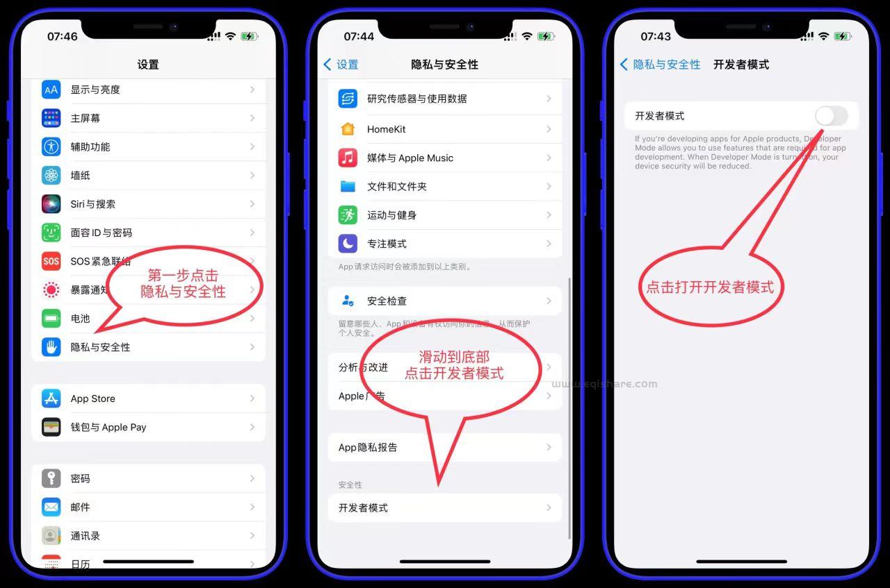 iOS16,iOS17系统提示“需要启用开发者模式”,参考以下打开即可。